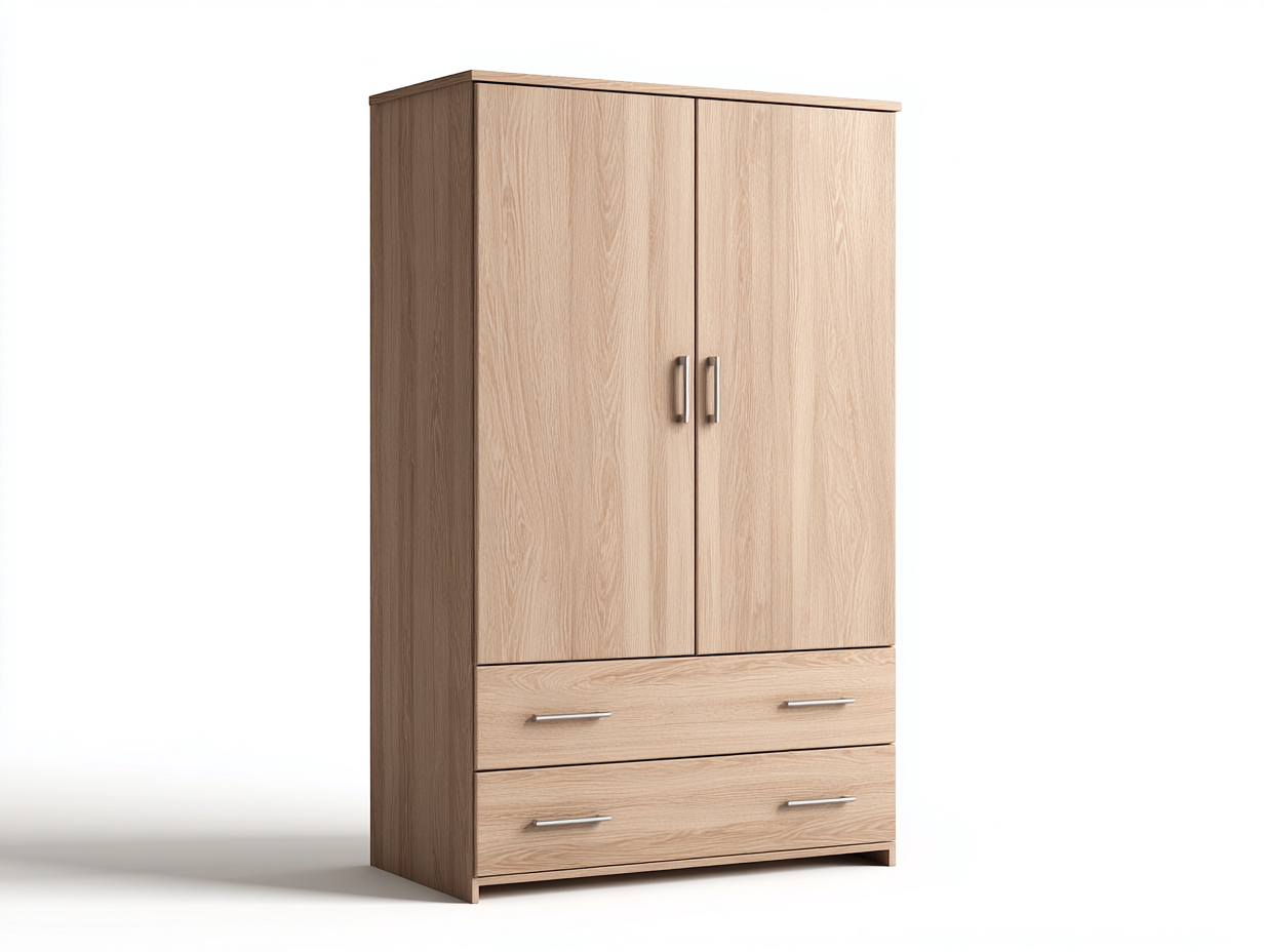 Armoire 2 portes avec tiroirs en bois décor chêne 90x55x185 cm - bois naturel - rangement intérieur design moderne