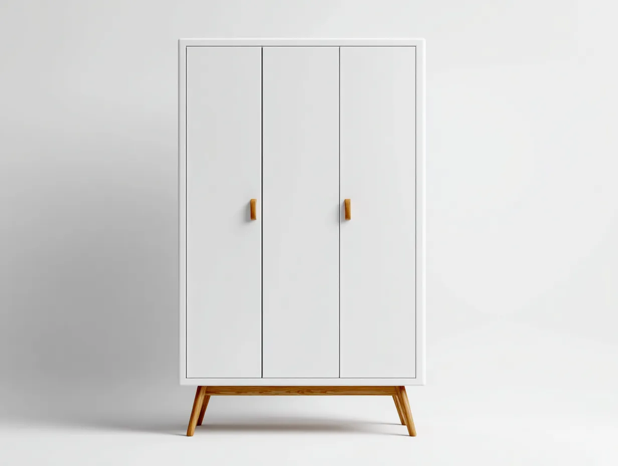 Armoire 3 portes en bois 120x55x185 cm - blanc et bois naturel - style scandinave